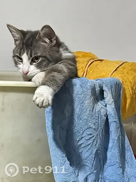 Он пугливый, отзывается на свое имя, у него красный ошейник от блох. При мурлыканье иногда издает булькающие звуки. Часто его последнее время замечала в окрестностях переулка «8 марта» и магазина «Пятерочка» по адресу: ул. Гаражная 78. Его нет примерно месяц, возможно загулял так как до этого переодически пропадал на пару дней и приходил домой показаться что живой и поспать.