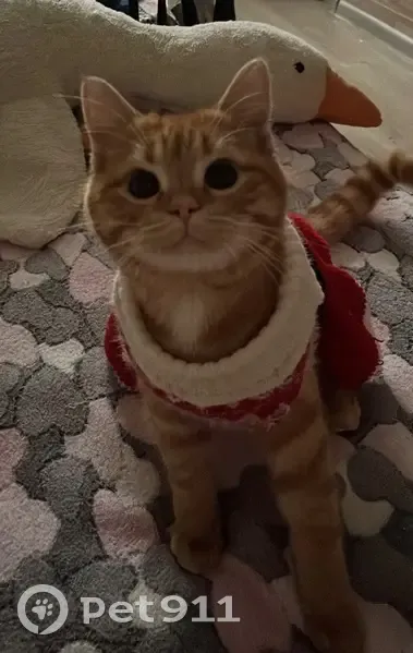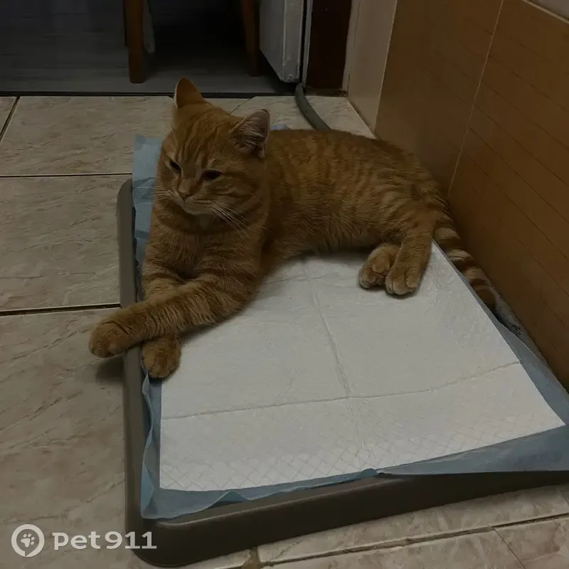 Рыжий кот, 9 месяцев, приболел и сейчас в ослабленном состоянии Во время того как мы шли в вет клинику испугался машины и убежал из переноски. Очень переживаем что состояние ухудшиться и он не сможет вернуться домой ходили искали не отзывается. Если где-то увидите или найдете сообщите пожалуйста