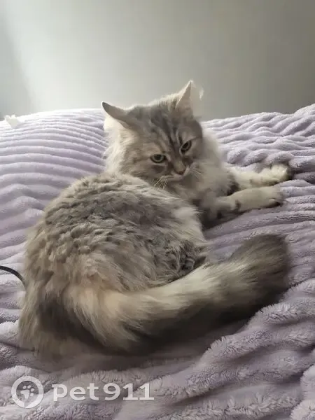 Окрас серый с белым,зелёные глазки,очень пугливая