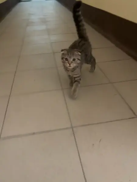 Метис шотландка , 1 год кошка, пропала ночью с 16 на 17 апреля на ул. Автолюбителей в районе магазина Семейный . Окрас серый в полоска на животе чёрные точки .