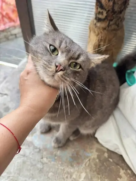 Кот, шотландец, вислоухий, серого цвета, окрас мраморный.