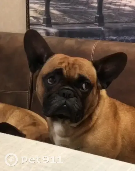 На прогулке пропал крупный французский бульдог по кличке Буч. Рыжего окраса с белым животом. Потерялся между 32 и 34 домом, на поле за теннисным кортом. Пёс взрослый и неагрессивный. Дружелюбный, идет на контакт к людям.
