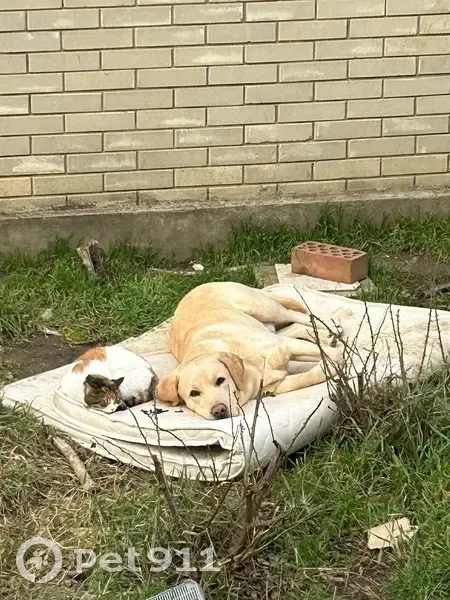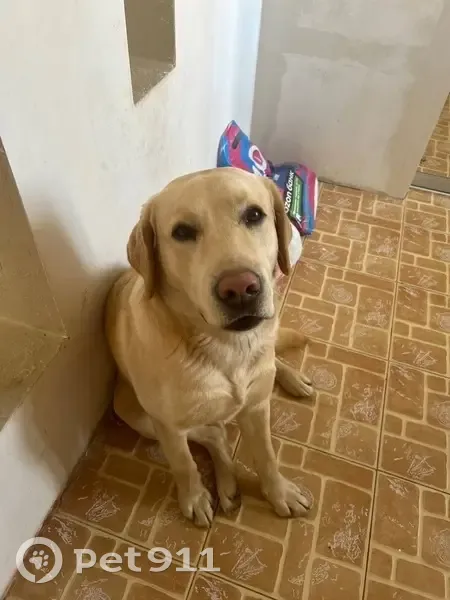 Дружелюбный, откликается на кличку и радостно бежит, окрас золотистый. Порода лабрадор. Выбежал из-за ворот и убежал неизвестном направлении