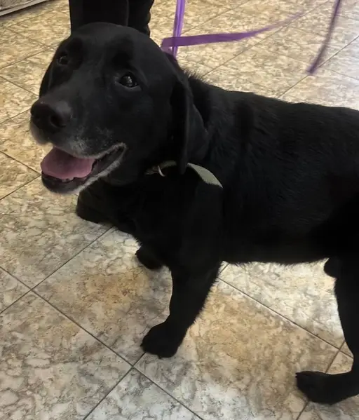 Чёрный лабрадор с белыми пятнами на шее и лапках, мальчик, кличка Лорд, 2 года, потерян на затоне около тропы здоровья, 12 октября, был в ошейнике с поводком