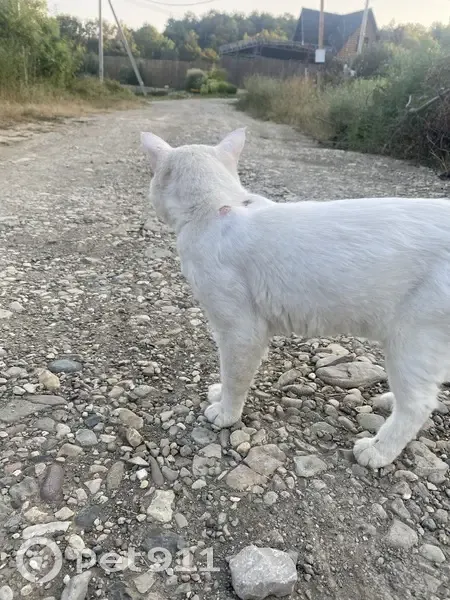 Село Бжид. Белый кот или кошка, ласковая, домашняя, но видно что брошенная. Может хозяин не найдётся, но если кто-то хочет себе забрать, было бы неплохо. На спине две плеши, неизвестного происхождения. Его только помыть и привить, и он станет отличным питомцем