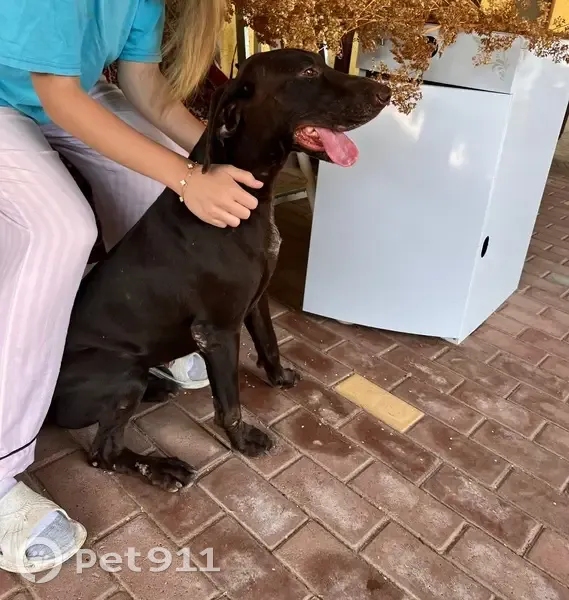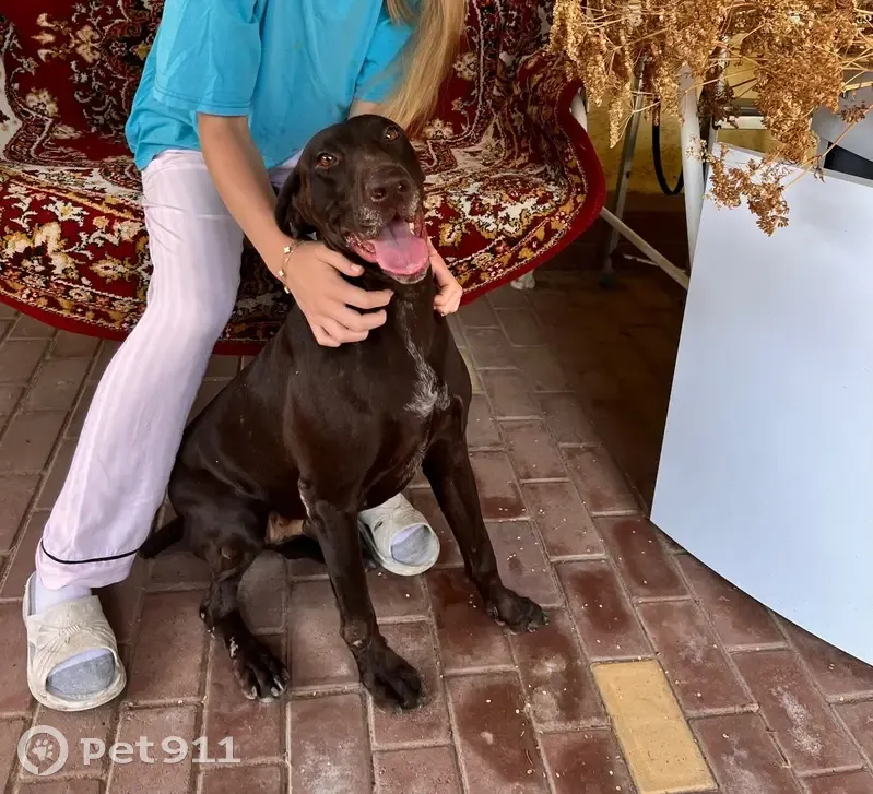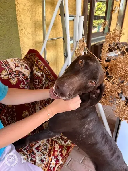 Нашли ее на трассе при въезде в Елизаветинскую из города. Собака породистая, охотничья, предположительно порода Курцхар, девочка, очень умная, знает команды, на вид около 2-х лет