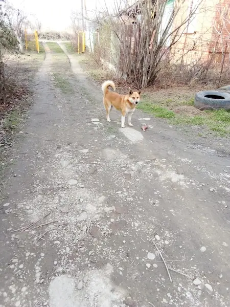 Похожа на сиба ину или сибирскую хаски. Собака ухоженная. Прибилась к дому пожилой дамы, у которой и так уже две собаки. Собаку смотреть ул. Компрессорная идти в самый конец.