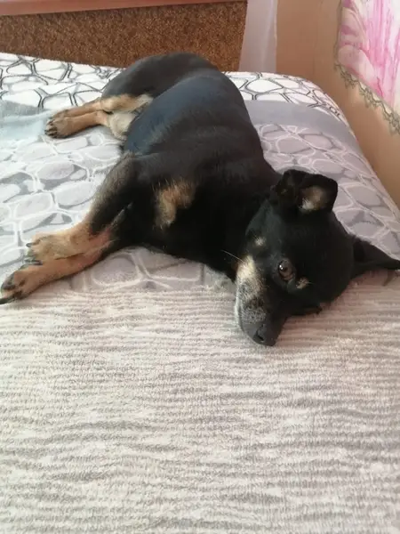 Мальчик ,Окрас чёрный с рыжими лапками и бровками. Найден в лесополосе между двумя населенными пунктами п. Южный и х. Красное знамя. Мальчик чистый без блох и запаха собаки, ногти одной длинны ,короткие как будто домашний. Любит котов очень и детей. Сейчас на передержке, но краткосрочно к сожалению.