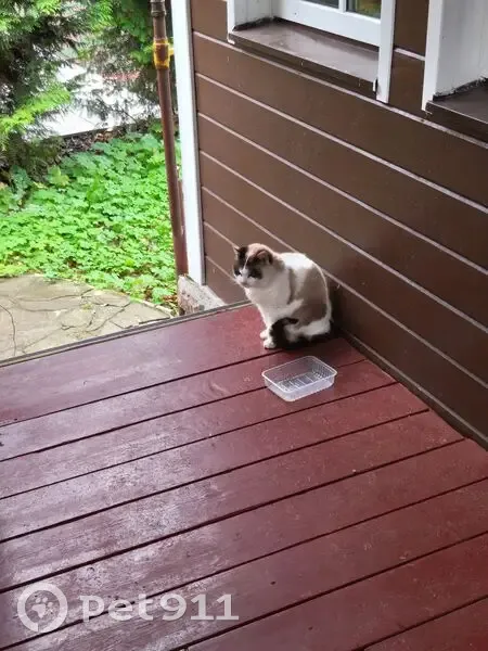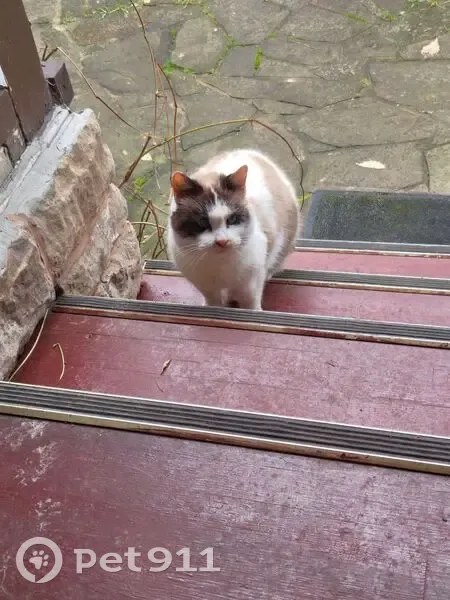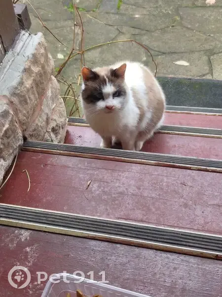 У кота( кошки) красный ошейник, глазки косенькие. Пугливый, не подходит , если приближаюсь ближе чем на метр - убегает. Кот явно домашний. Хозяева найдитесь!!!