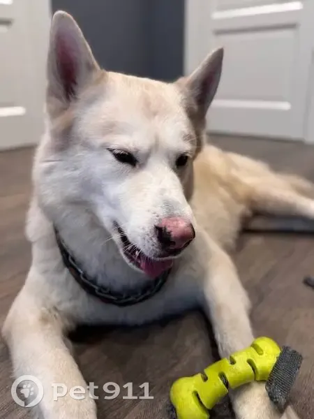 Найдена собака Хаски, мальчик Очень послушный с розовым носиком. Никто не может забрать на передержку, из подьезда отпускалт его на улице, сейчас в подьезде. Нужно срочно найти хозяина или передержку.