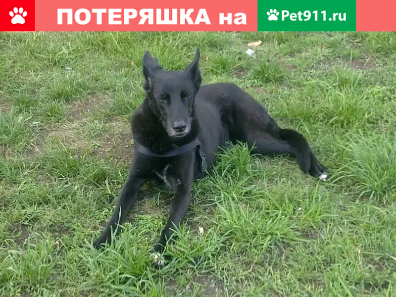 Чёрная собака с шлейкой ходит одна видимо ище...