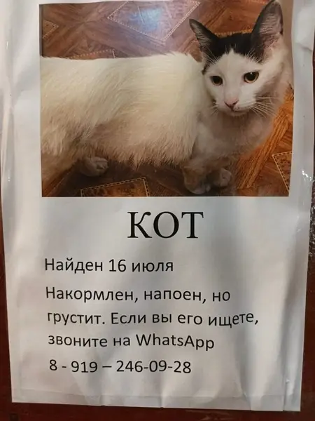 Пропал в промежутке 4 утра -12 дня. Окрас: основная часть белая, верхняя часть головы и нос черный, хвост чёрный. На руки не Берется на имя отзывается. Если найдётся сразу звонить по номеру (89997991906)