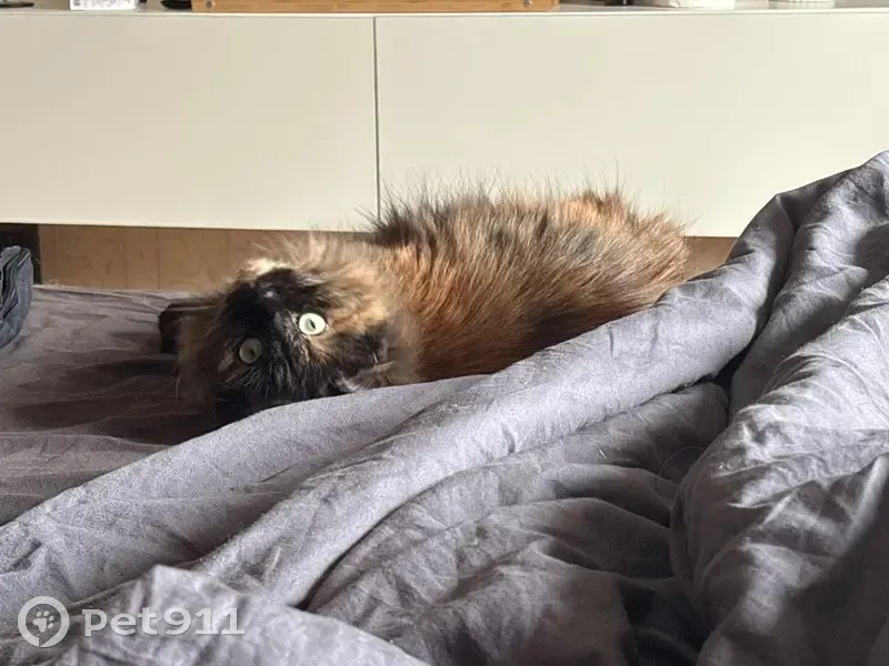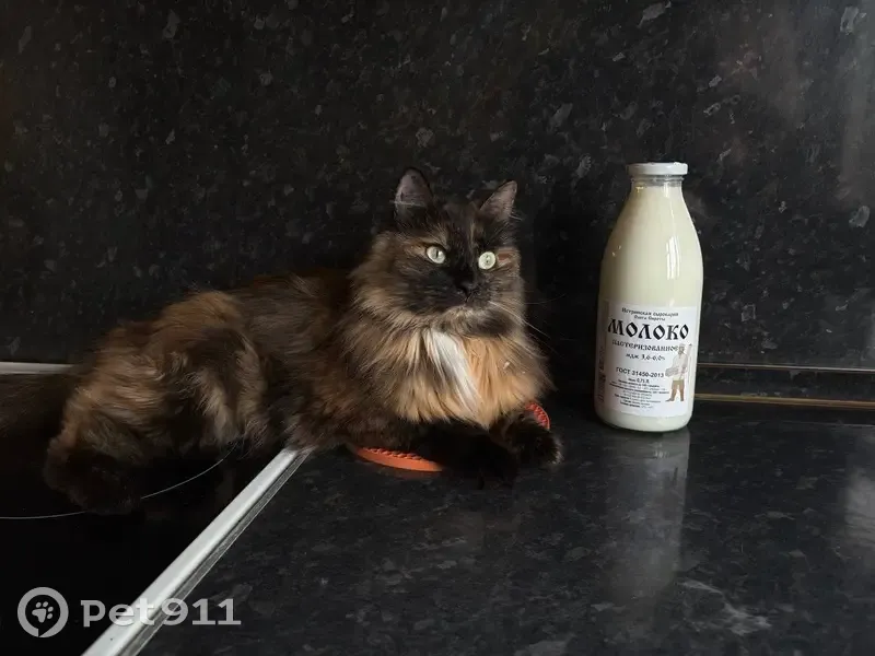 Черепаховый окрас, длинная шерсть, большие зеленые глаза, один белый усик и рыжий пальчик на передней лапке. Откликается на кличку Микки, а также на «Киса», «кисуля», «кис-кис». Очень осторожная, боится резких движений. Прыгнула из окна 3 этажа