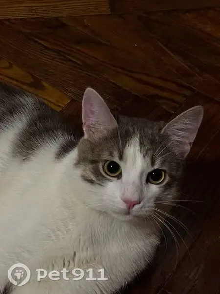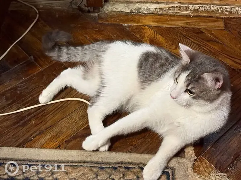 • Кличка: Фантик Не часто отзывается на свои имена, придерживаясь традиционного: кыс-кыс-кыс • Пол: Мужской Под хвостом и на самом хвосте снизу до сих пор присутствуют последствия кастрации, в виде пятен зелёнки. • Окрас: Белый с серыми пятнами. На голове серая "шапочка", захватывающая уши и часть мордочки, белая полоса посередине. На теле большое серое пятно. (Более четкое описание можно подчеркнуть из приложенных фото.) • Шерсть: Короткая • Особые приметы: отсутствие ошейника. На кончике носа, шёрстка немного отличается от общей массы, направлением и является более редкой