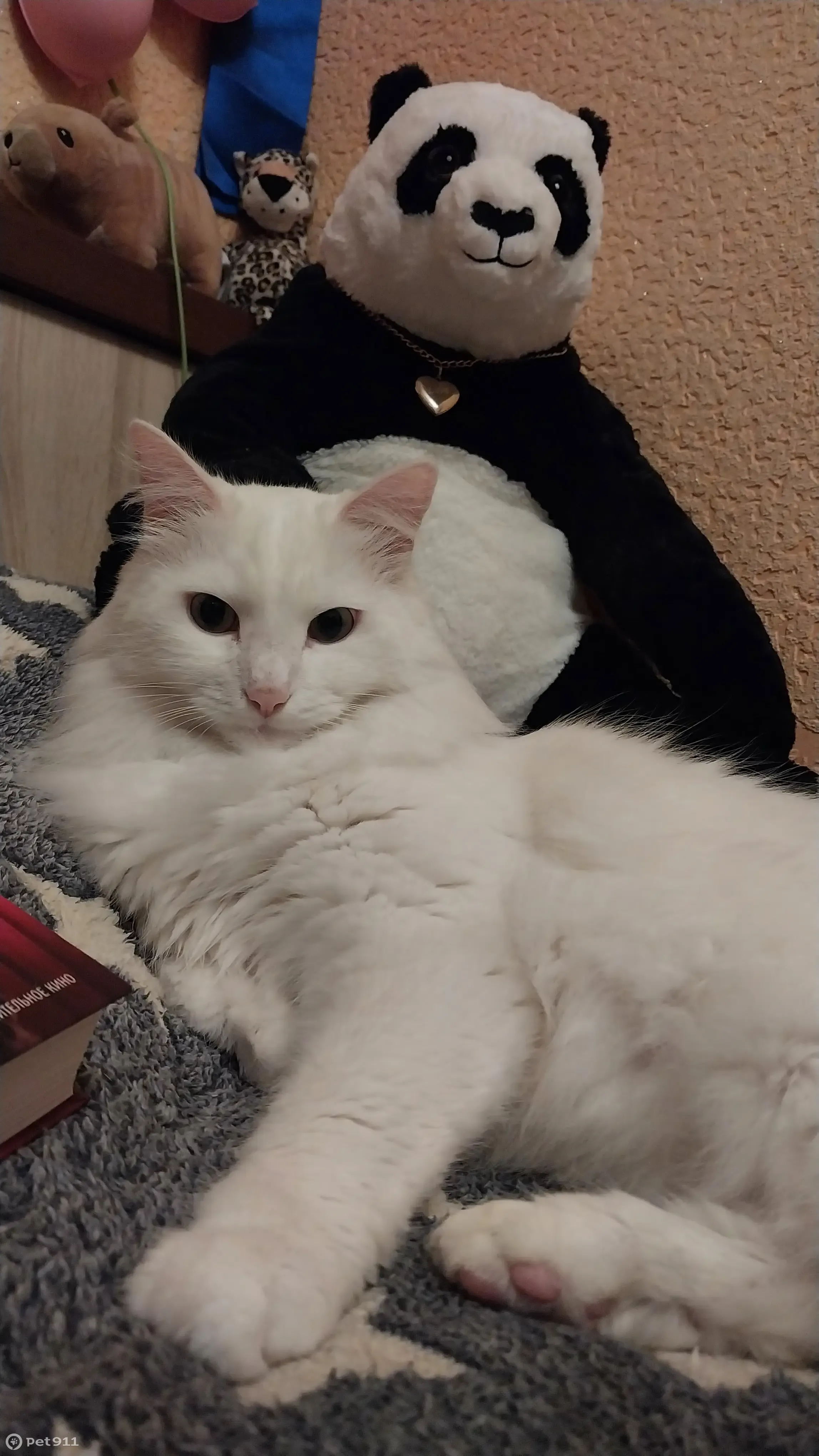 Кошка чёрно-белая пушистая, зовут Ася. Пуглив...