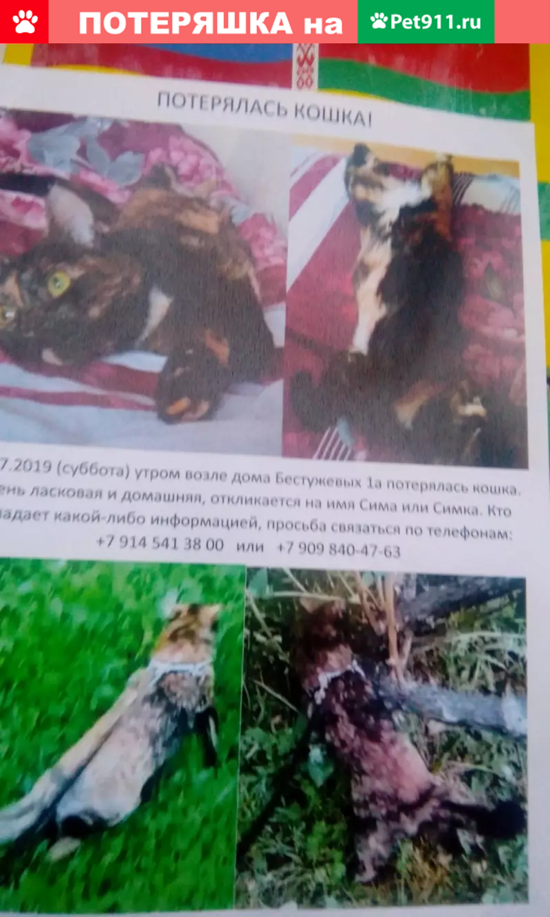 Пропала кошка Сима/Симка на ул...