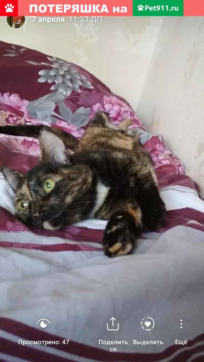 Потерянные животные Москва, фото: Пропала кошка Мася на ул. Ленина, Москва