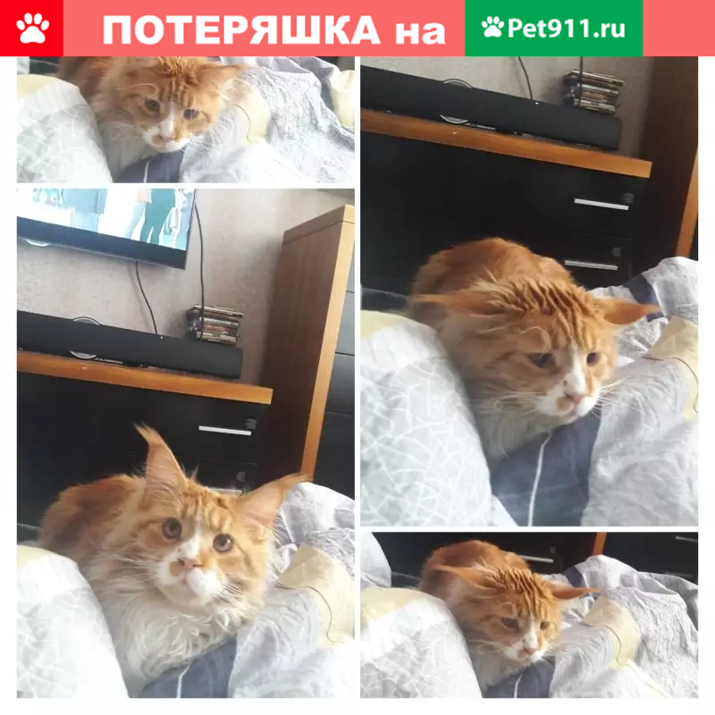 Пропал кот. Порода мейн-кун. Рыжий с белой гр...