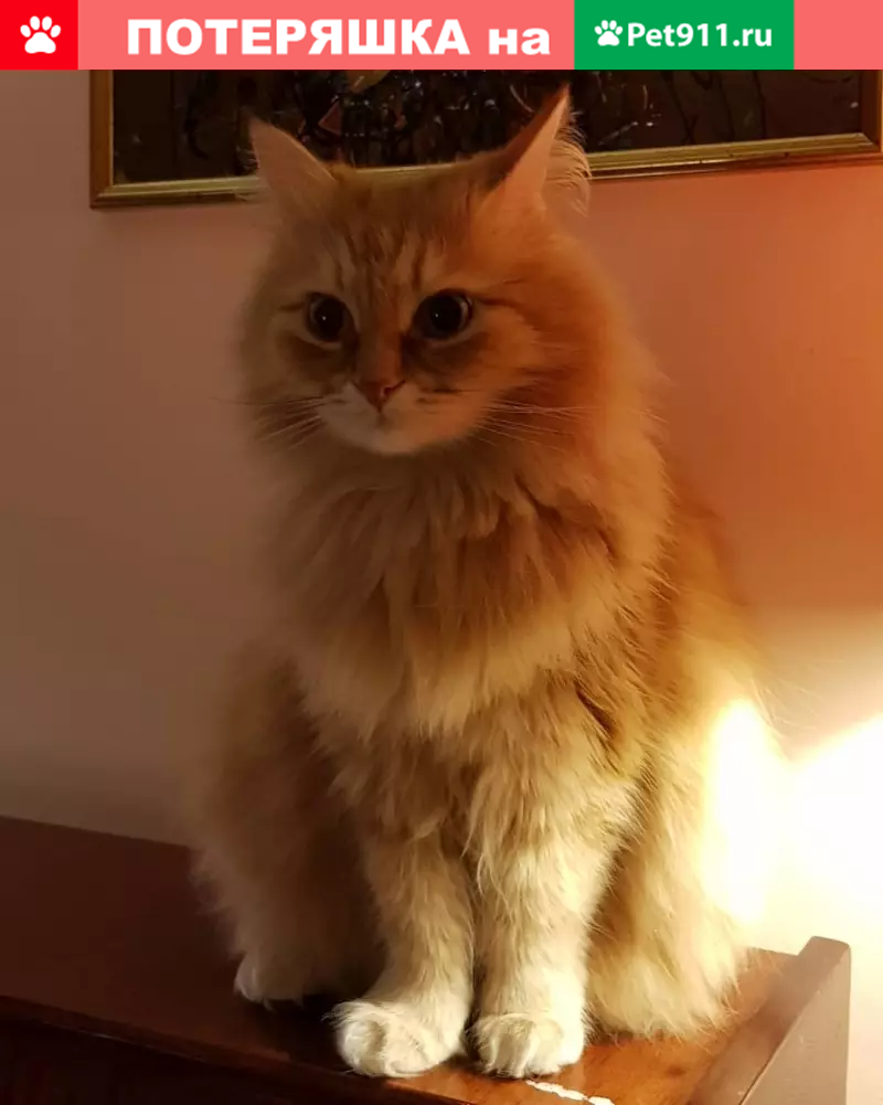 Потерянные животные Москва, фото: Пропал рыжий кот Ричард в Москве - СРОЧНО!
