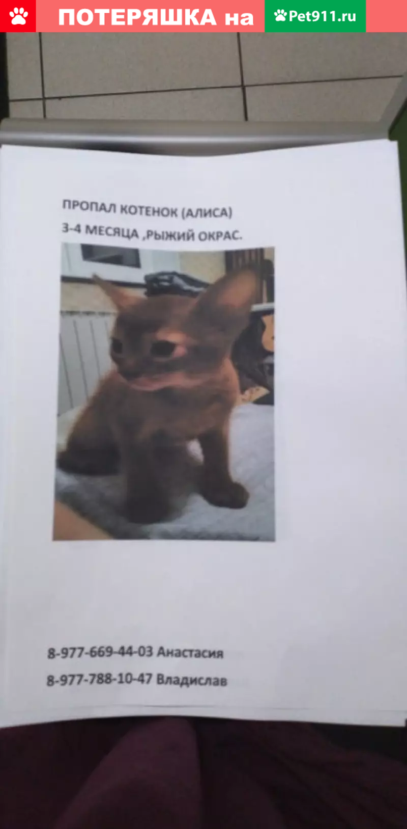 Потерянные животные Москва, фото: Пропала кошка на Таллинской 20к2
