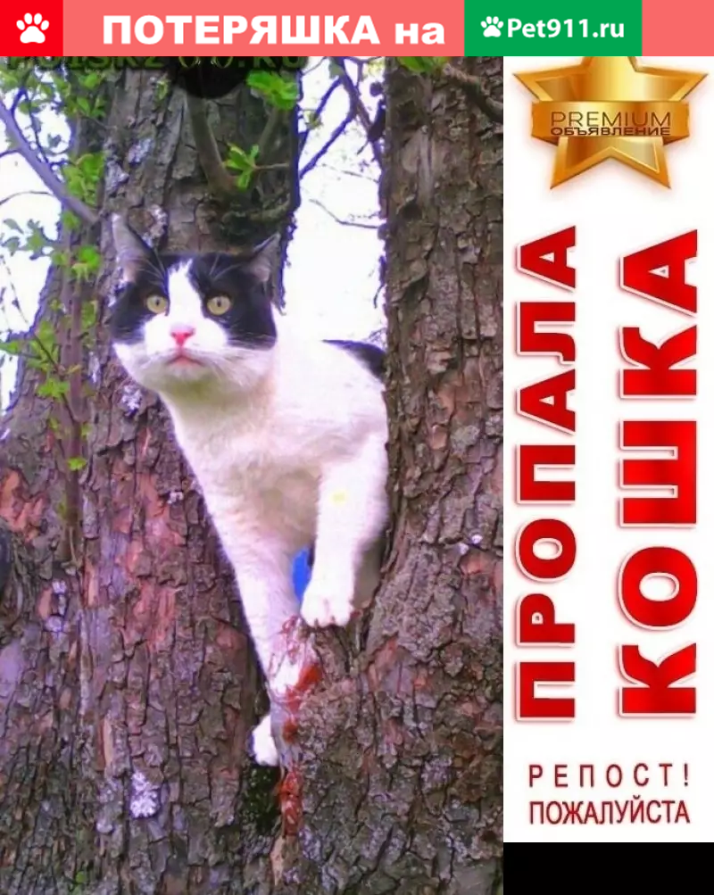 Пропала кошка, вышла из окна первого этажа. К...