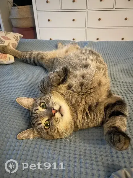 Кот без ошейника, домашний, ему примерно 10 месяцев, кастрирован. Животик побрит после узи, шерсть уже почти отросла, но все равно заметно. Кот добрый, любопытный, с незнакомыми людьми ладит, но с осторожностью. Убежал на даче, не доглядели. Выбежал из дома. На улице впервые
