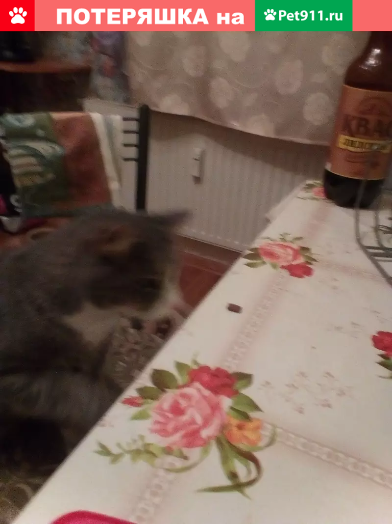 кот серый с белыми лапками и мордочкой белая шейка, возраст 5 лет.