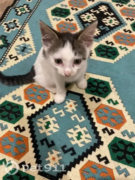 Найдена молоденькая кошечка пушистая, белого...