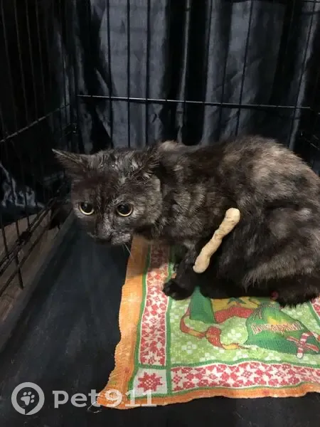 Кошка с аппаратом Илизарова на передней левой лапе, нашли в гаражах на улице, в плачевном состоянии, откушен собаками хвост, операция, скорее всего, была давно. Ищем любые сведения об этой кошке, ищем врача, хозяев, волонтеров.