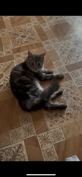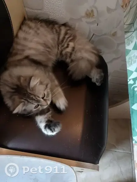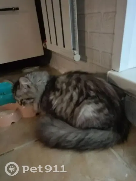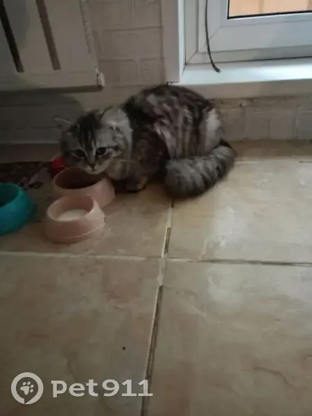 Серый в полоску, пушистый хвост, не ласковая, на улице дала погладиться, на руках пошла в квартиру, в квартире шипит дерётся, не даёт одеть ошейник от паразитов. На улице была больше месяца. Беременная. Себе не могу оставить так как есть кошка