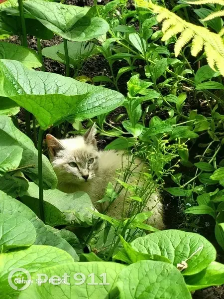 Окрас похож на сиамского, пока не ярко выражен. Глазки голубые. Появился во дворе на детской площадке. Грязный. К себе не подпускает. На вид 4 месяца. Пьет молоко.