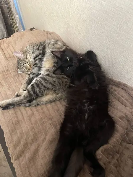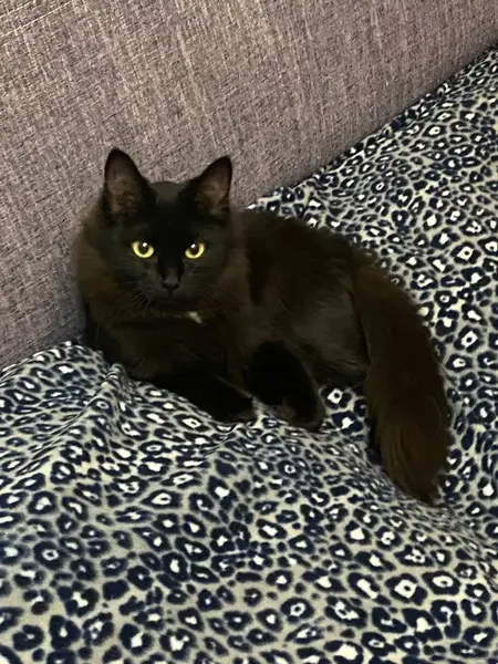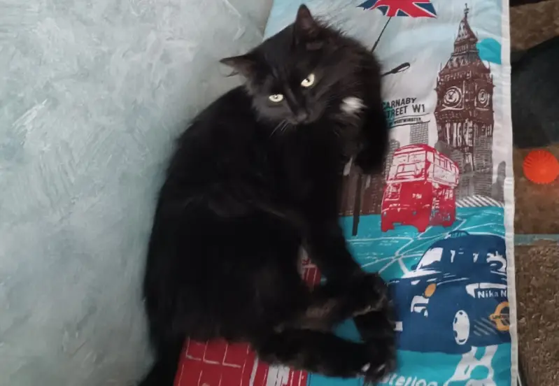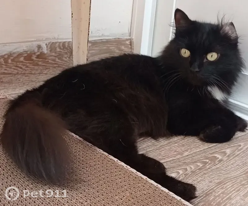 Кошка была найдена 18.06.2025 во дворе жилого дома. По внешним признакам и повадкам видно что домашняя. Окрас черно-коричневый, шерсть пушистая. Хвост пушистый. Присутствуют белые пятна на манишке и животе. Также есть мелкие белые волоски по телу. Ухо целое, но сломано, возможно травма от падения с высоты. Очень ласковая, контактная к человеку. Знает лоток с наполнителем, когтеточку, кушает сухой корм. Часто топчет лапами. Ищу старых или новых хозяев.