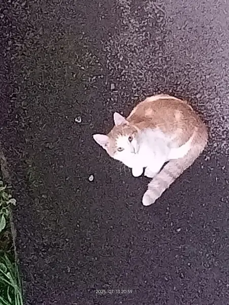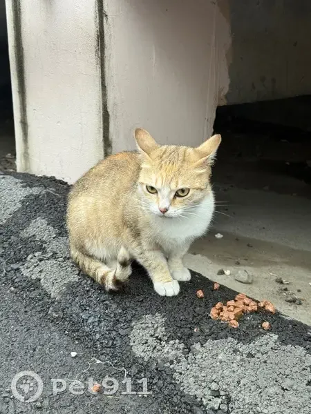 Найдена кошка или кот, уже второй день ютиться под уличной лестницей, сразу идет на контакт, ластиться.