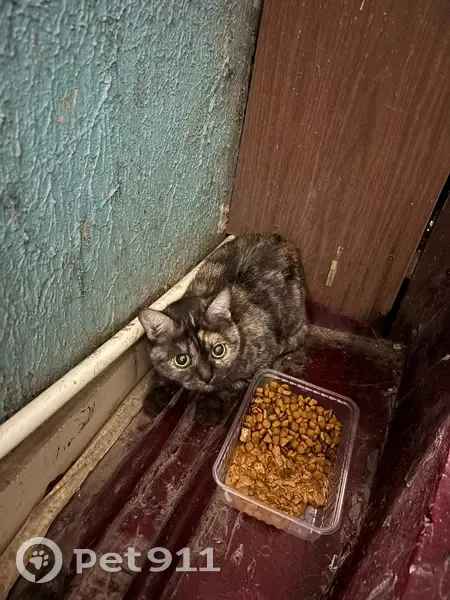 Черепаший окрас, очень ласковая и сильно напугана. Забежала в подъезд. Красномосковская 32 (Железнодорожный район). Видно что ухоженная и домашняя кошка. Дается гладиться…Хозяева найдетесь Или может кто сможет забрать себе…