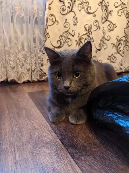 Была найдена на улице около дома Взлётная, 4. Серый окрас, кошка очень контактная, людей не боится, бежит ластится, гладить начинаешь сразу мурчит.