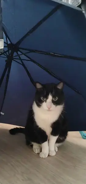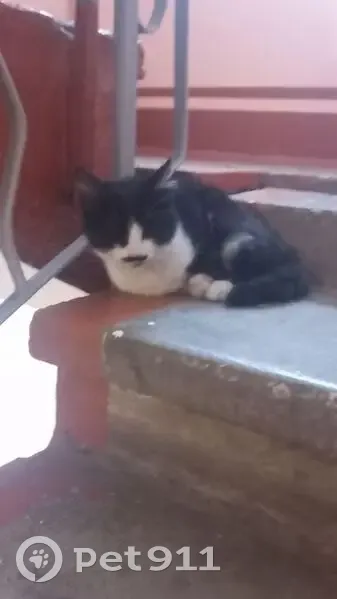 Черно-белый котенок (вроде девочка), на мордочке чёрное пятно, похожее на усы, белые "носочки" на лапках. Пряталась под машиной на парковке рядом с магазином. Понять домашняя или нет сложно, слегка грязненькая, но очень ласковая, сама прыгнула в руки.