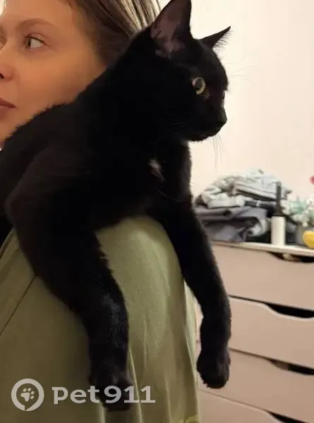 Найден в подъезде, в домовом чате на сообщение никто не отвечает. Чёрный, спокойный, не шумит, очень активный и любознательный, идет на руки, ласковый.