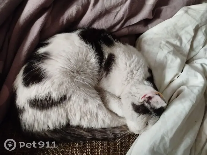 Котёнок ласковый, доверяет людям, приучен к лотку, выпрашивает влажный корм, без проблем ест сухой. Нашли на улице замерзающим, не знал куда идти и где согреться. Лапки и носик розовые, кот белый с черными пятнами, хвост полосатый.