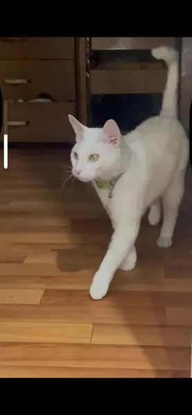 Белоснежная котëнок - девочка с черным пятнышком на голове. Учитывая размеры на данный момент, кажется, что будет крупная. Найдена возле подъезда жилого дома, выбежала навстречу чумазая, игривая и безумно счастливая. По опросу соседей было установлено, что на тот момент она бродила по подъездам уже несколько дней. Забрали на передержку, первым делом пошла в лоток, к миске, следом к поилке, а потом уже открыла охоту на хвост нашей кошки. Контактная, ласковая и безумно энергичная кошечка.
