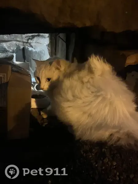 Очень ласкойвый кот(или кошка) не посмотрела, прячется в подвале возле 3-го подъезда, диктатуры 6. Видно, что домашний был. Мяучит, плачет, не получается найти даже на передержку место