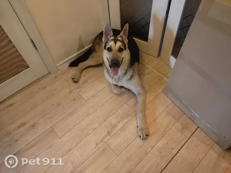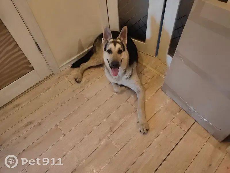Найден кобель восточно-европейской или немецкой овчарки в районе 4 моста, рядом с рыбным хозяйством. Добрый, не агрессивный, увязался за мной и моей собакой. Ошейника на нем нет, вид ухоженный