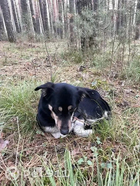 Кобель, черная головная и спинка, лапки и животик светлые. Коричневый ошейник. Очень умный пёсик. Знает команды, ласковый и видно ищет глазками хозяев!