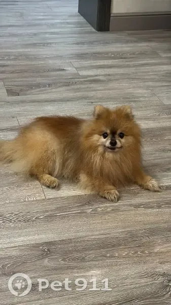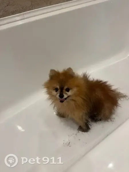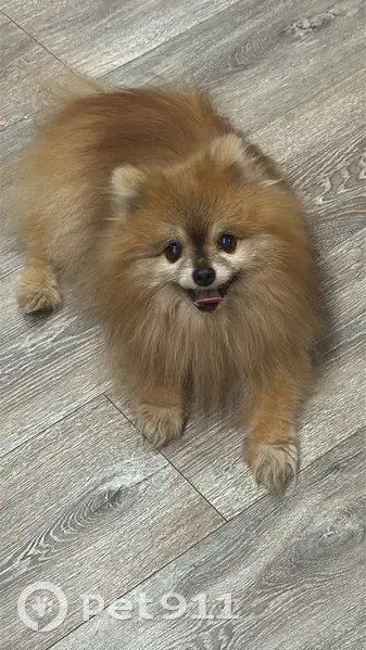 Шпиц, стандартный окрас рыженький, сначала сидел во дворе, потом выбежал на дорогу прям на проезжую часть, спасибо водителям вышли и помогли загнать на тротуар, не давался в руки, убегал, в итоге ребята помогли поймать, очень скучает по хозяевам, ни пьет ни ест…