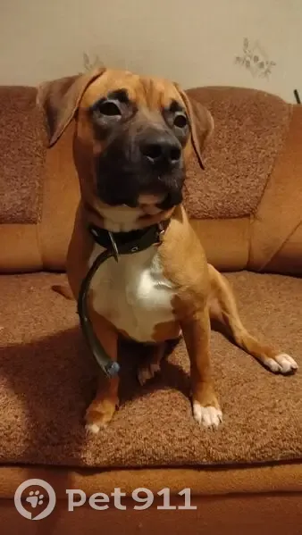 В ночь на 27 декабря найдена собака, в ошейнике, адресника нет, помесь или метис Питбуля или Стафа, темно рыжая с белой грудкой, возраст около года, по мнению ветеринаров недавно была течка. Была привязана к дереву за домами в Черёмушках ул. Шевченко. Собака чистая, упитанная, знает некоторые команды, спокойная