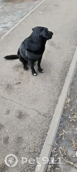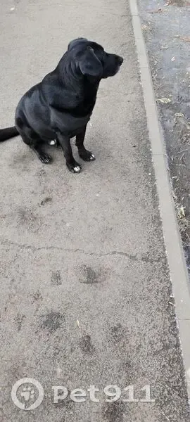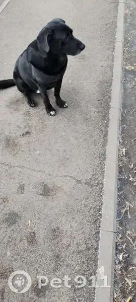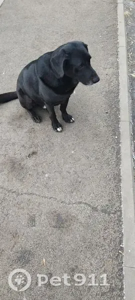 Похож на Лабрадора, окрас черный, уши вислые, поведение домашнее, ведет себя как потерялся, от корма отказался