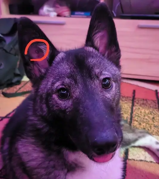 Собака выглядит ухоженно, ласковая, любит играть. Была без ошейника. Выглядит как помесь хаски и лайки, голубые глаза. Играли на спортивной площадке пришел пес и начал отбирать мячи. Сейчас на передержке на 2 дня.