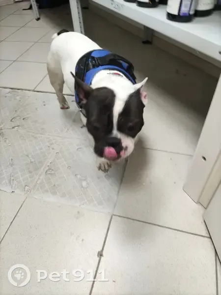 Найден кобель французского бульдога бело-чёрного окраса с синей шлейкой и радушным ошейником во дворе между Молокова, 19 и Кубом. Лежал в луже и жадно из неё пил. Сейчас на передержке.