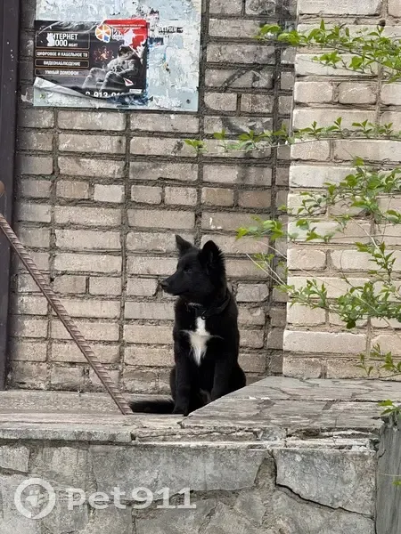 Сегодня утром, примерно в 11.10 гуляла со своей собакой и встретила эту собаку, щенок, месяцев 6, пугливый, хвост поджат, черный ошейник, пол не разглядела. Моя собака недружелюбно была настроена, поэтому близко не смогла подойти. Мой 8-923-574-67-75. Скажу , где видела.