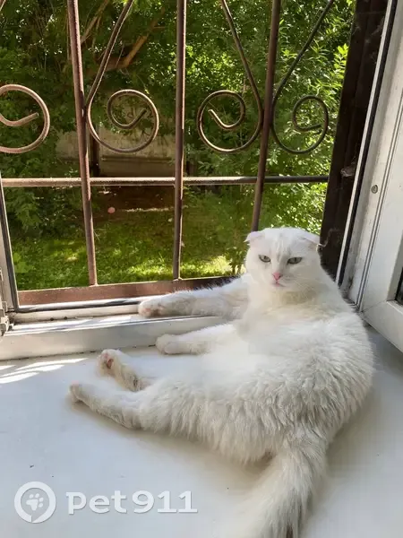 Идеально белая окрасом, похоже упала с окошка когда мы были в отъезде, зеленые глаза, вислоухая