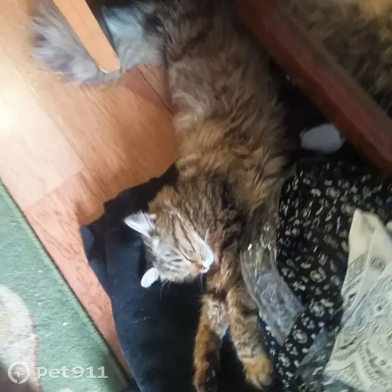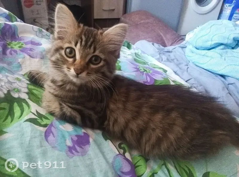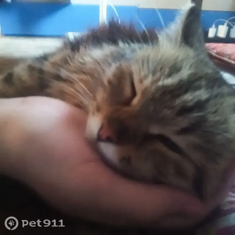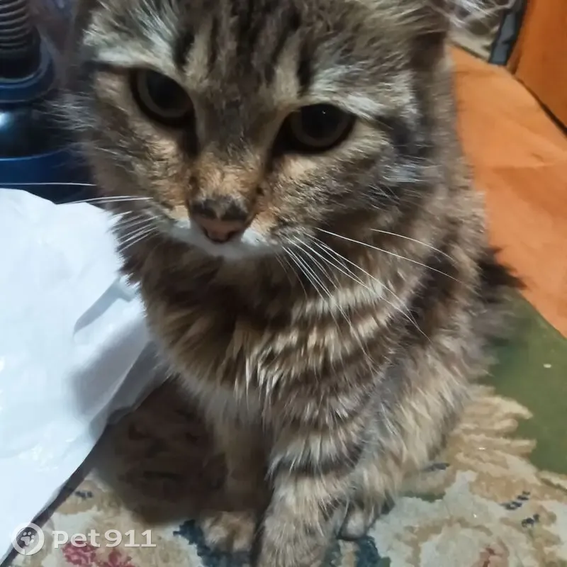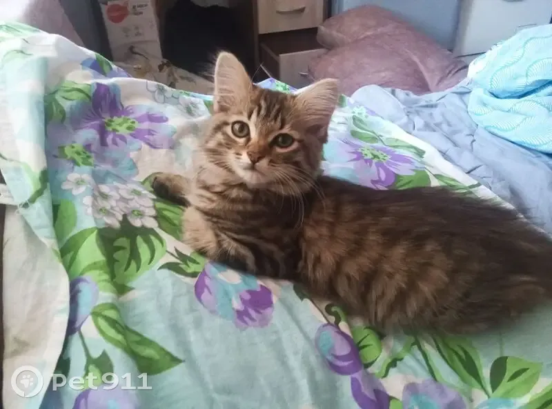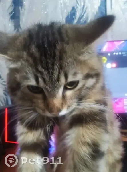 Окрас коричнево черно белый жёлтые глаза иногда в центре зеленоваты сейчас находиться в периоде течки ну или месячных я не знаю очень хорошо откликается на имя Мия выпрыгнула из балкона